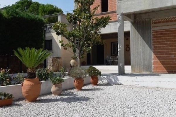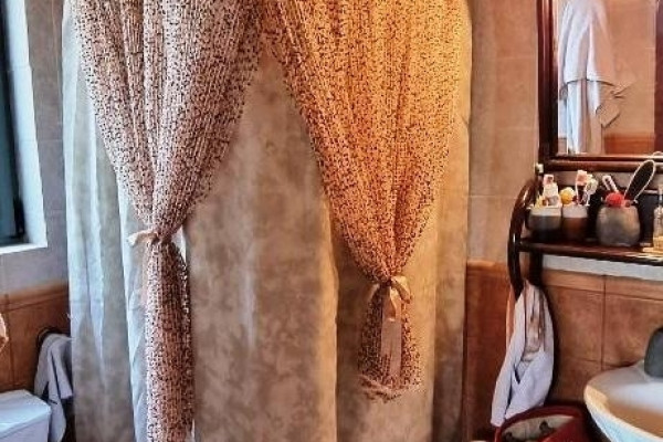 The biggest house is 161,20 sq.m. on two floors and has excellent floor plans and the best quality construction. On the ground floor you find the big living room, a spacious kitchen with its own small backyard and a bathroom. Stairs ( a small lift can be constructed) take you to the first floor with three bedrooms ( two of them ensuite) and big verandas with open view. The top terrace also has lovely views to the surrounding area and a 17 sq.m. room. The house is semi finished, giving you the opportunity to finish it to your own taste.