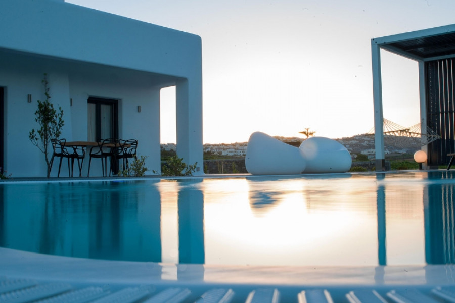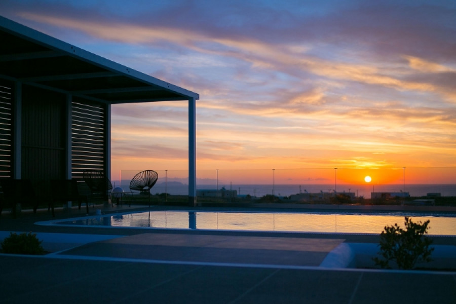 Property Code: 1-655 - Villa FOR SALE in Santorini Thira for € 2.300.000 . This 160 sq. m. Villa is on the Basement and features 3 Bedrooms, Livingroom, Kitchen, 2 bathrooms . The property also boasts unobstructed view, garden, swimming pool. The building was constructed in 2016 Plot area: 5000 s.q.