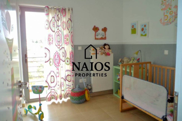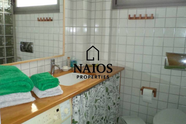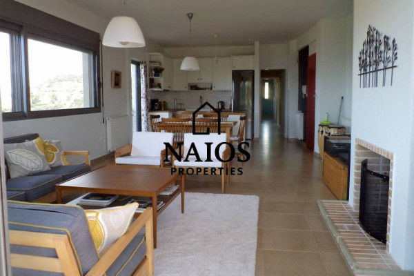 Elevated ground floor (main level): 120 sq.m. apartment with 3 bedrooms, 2 bathrooms (showers), storage room, fireplace, oil-based autonomous heating and 2 A/C units. Fully equipped kitchen.