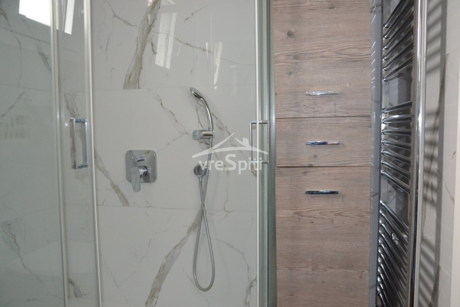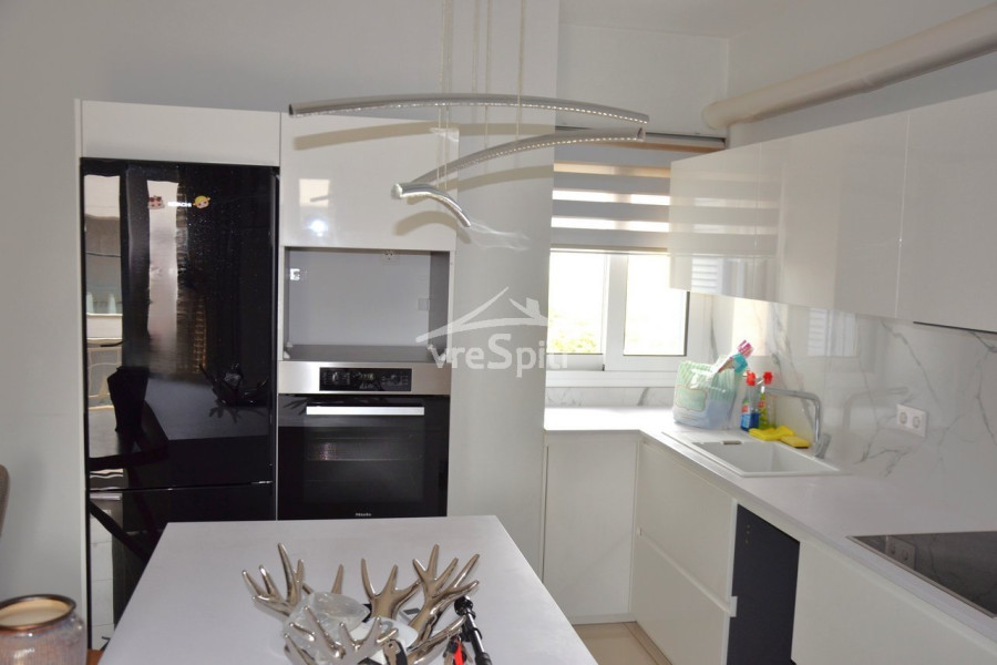 The large balcony of the apartment is accompanied by an electrically retractable Pergola and the remaining two with electric awnings.