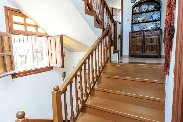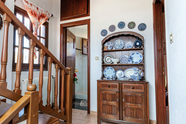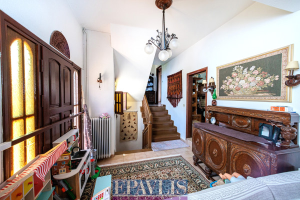 Villa of 243 sq.m. on a 4,200 sq.m. plot, built on three levels in 1990, in excellent condition, set within a large garden in the Vrachati area. The property features a semi-basement with a living room, fireplace, kitchen, bedroom with bathroom, office, laundry, and access to the garden; a raised ground floor with living room, kitchen, dining room, bedroom, bathroom, and large terraces; and a first floor with two bedrooms, a bathroom, and terraces. All levels are connected by an internal oak staircase. It offers four open-air parking spaces, heating with oil, air conditioning, solar water heater, boiler, wooden double-glass frames, energy certificate: D, and flooring of tiles, wood, and stone. The condition is very good. The villa is close to transportation, the sea, supermarkets, city center, and dining, with unobstructed panoramic views and east-southeast orientation.