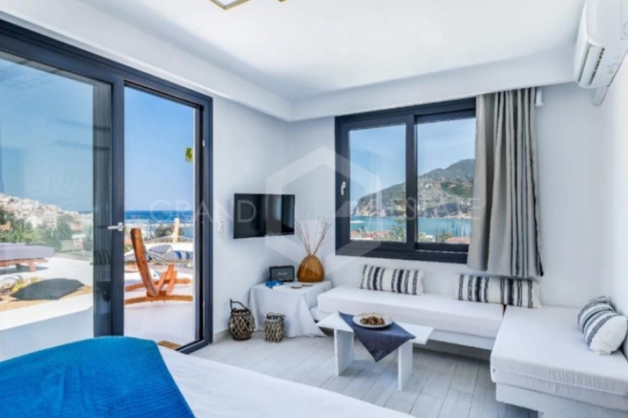 Skopelos - Studio 34sqm fully furnished, bedroom, 2nd, penthouse, fully renovated, year built 1977, renovation year 2023, energy class D, kitchen, bathroom, heating type: autonomous, heating medium electricity, air condition, quiet, dual aspect apartment, luminous, view sea, frontage, painted, solar heater, balconies, large balconies, balcony 70sqm, elevator, frames synthetic, double glazed windows, door screen, safety box, pets allowed, residential zone, eastern orientation, access from asphalt, investment property.