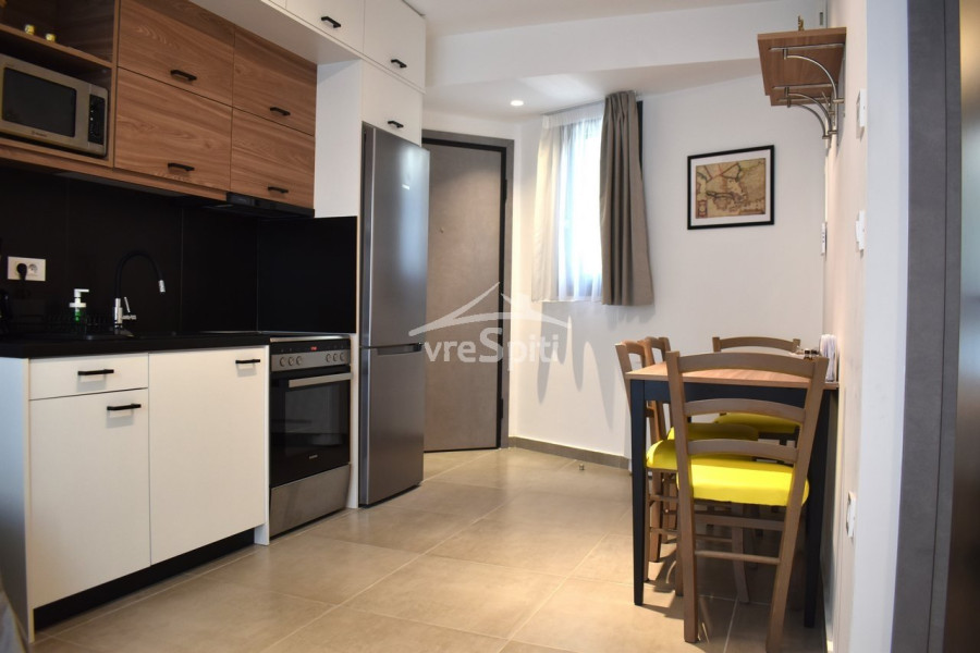 It consists of the open plan living room-kitchen, the separate spacious bedroom and the large bathroom.