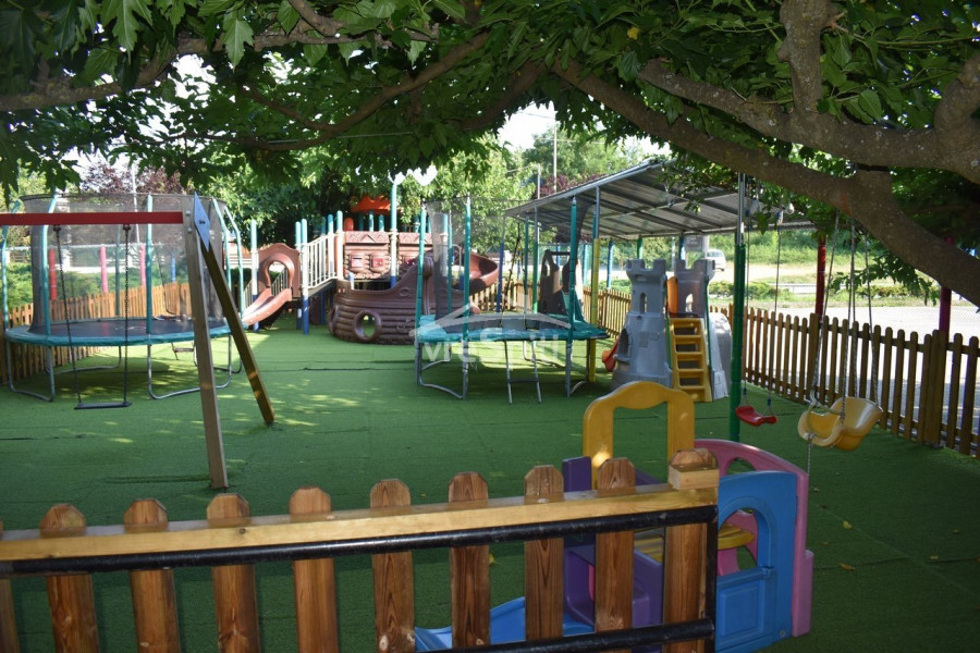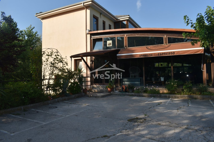 On the main road of Perama, a building with maximum visibility, designed for sanitary purposes. The large courtyard is used as a parking lot but can serve various uses. It has a fully equipped kitchen that adequately covers the needs of the space and can serve events.