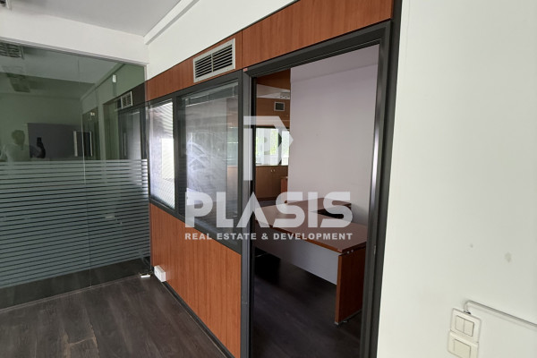 Koukaki - Makrygianni, Office For Rent, floor: 1st, total area 145 sq.m. The property is located close to Metro, Tram, Transportation, Park, Square, City Center, Acropolis, Market, in Residential, 600 Meters from town, has: 5 rooms, 1 bathroom/s, 2 wc. Its heating is Autonomous with Fan coil, while Air Conditioning is also available, it has Aluminum frames with Double glazing, energy certificate: C and the floors are: Laminate. Its condition is: Renovated, Good, it has a view Square, Park, Green, Opening, Panoramic. The property is Corner, On Avenue and also has the following features and advantages: Structured Wiring, Rack, Internal staircase, Security door, CCTV, On commercial street. Price: €2,600. Plasis Real Estate Glyfada, Contact Phone: 2109601909, email: