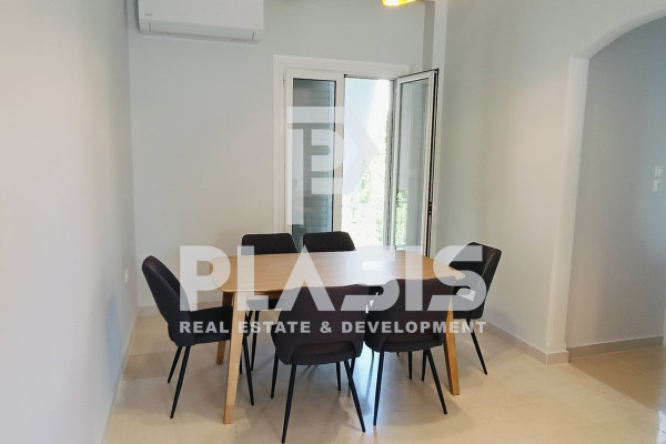 Apartment For rent, floor: 2nd, in Glyfada - Glyfada - center. The Apartment is 120 sq.m.. It consists of: 3 bedrooms, 2 bathrooms, 1 kitchens, 1 living rooms. The property was built in 1985 and it was renovated in 2025. Its heating is Personal with Electricity, Air conditioning, Solar water system are also available, it has Aluminum frames with Double glazed windows, the energy certificate is: C and its floors are Wooden, Marble. The property's status is: Renovated, Freshly painted, Very good condition, it is close to Tram, Transportation, Park, Sea, Seaside, Square, Mall, Cafe/Restaurants, Local market, it has Public square, Sea, Mountain, Openness, City views view. The Apartment is Painted, Furnished, With Facade, Bright, Airy, Sunny, Airy and it also has the following unique features and advantages: Window Screens, Tents, Elevator, Electric Appliances, Storage, Security door, CCTV. Price: €2,500. Plasis Real Estate Glyfada, contact phone: 2109601909, email: