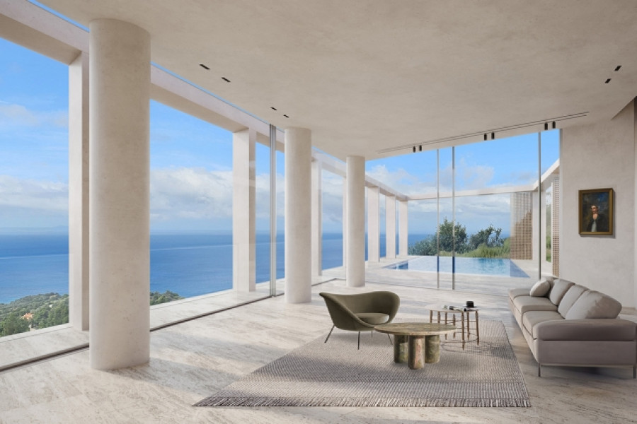 Nestled in the lush, rolling hills of Vassilikos on the southern edge of Zakynthos, this exceptional 332 m² villa offers a rare opportunity to own a masterpiece of architecture in one of the island’s most coveted regions. Set on a generous 4,090 m² plot, the villa is surrounded by olive groves and boasts panoramic views of the sparkling Ionian Sea.Designed to harmonize with its natural surroundings, this four-bedroom, four-bathroom residence artfully blends modern luxury with timeless Greek heritage. From the moment you pass through the striking monolithic stone entrance wall, the property reveals its thoughtful spatial composition—centered around a series of landscaped courtyards that connect public and private areas, enhancing light, airflow, and a deep sense of tranquility.The main living space is open-plan and bathed in natural light, with retractable glass walls that open onto a large terrace, gardens, and a private swimming pool—creating a seamless connection between indoor elegance and outdoor splendor. The bespoke kitchen and refined dining area are ideal for entertaining, while a separate bedroom wing ensures privacy and calm. The dramatic seven-meter-high concourse leads to the first-floor master suite tower, offering stunning sea views and access to a secluded upper garden and pergola—perfect for intimate gatherings or peaceful reflection.Additional features include an indoor spa with jacuzzi and sauna, a multi-level garden, and a dedicated outdoor dining and BBQ area—crafted for relaxed island living and sophisticated hosting. The lower level houses an additional en suite bedroom, a guest bathroom, and a utility room, making the villa ideal for both private use and upscale holiday rentals.Located just minutes from iconic beaches such as Banana Beach and Porto Zorro, and a short drive to Zante Town, this property provides the perfect balance of serenity and accessibility. With its eco-conscious design, world-class amenities, and architectural brilliance, this villa is not just a home—it's a sanctuary and a standout investment on one of Greece’s most beloved islands.Key Features:Property Size: 332 m²Land Size: 4,090 m²4 Bedrooms | 4 BathroomsOutdoor Pool | Indoor Spa PoolSauna & JacuzziMulti-Level Landscaped GardenOutdoor Dining Area with BBQEn Suite BedroomsSea ViewsEco-Friendly DesignStorage & Laundry/Utility RoomPrime Location in VassilikosRare Investment Opportunity in a High-Demand AreaThis is a once-in-a-lifetime opportunity to own a prestigious property in one of the Ionian Islands’ most exclusive locales.
