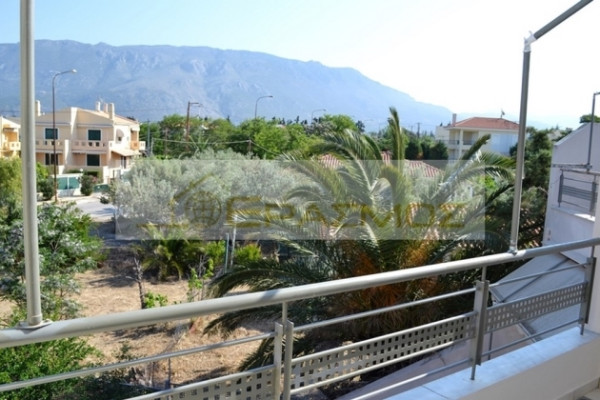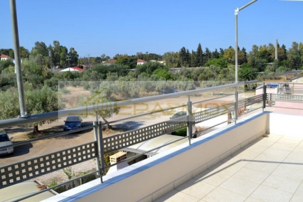 Loutraki newly built independent maisonette 144 sq.m. 2 levels (raised ground floor - 1st), on a plot of 220 sq.m. with 2 bedrooms, spacious living-dining room with energy fireplace, large verandas with unlimited views, open plan kitchen, closed parking space, autonomous oil heating per floor, armored door, alarm, bbq, awnings, solar 3-energy, 3-phase current, satellite antenna, floors with tiles, storage room, bathroom and wc, aluminum frames with double glazing, quiet environment
