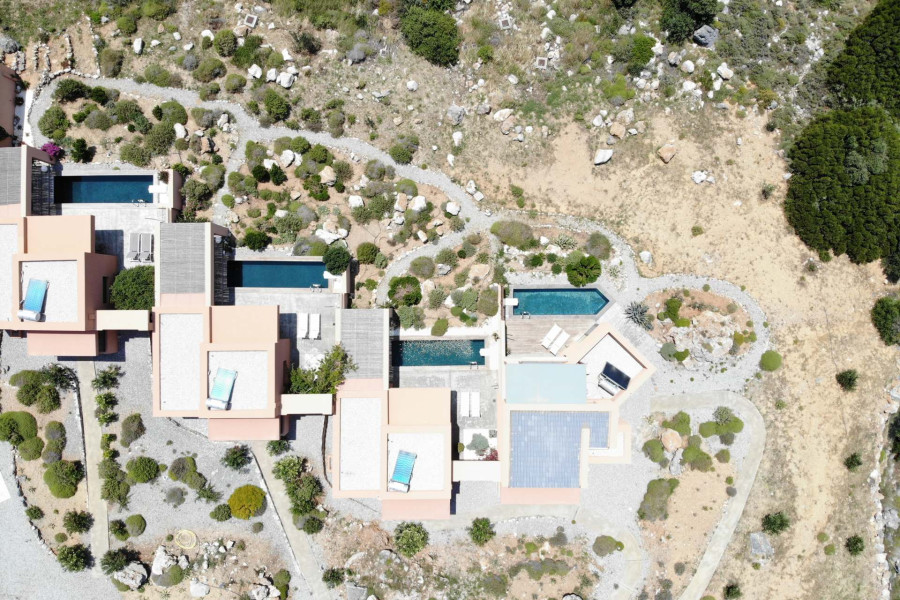 This exceptional property includes a harmonious mix of villas, suites, and an apartment, all thoughtfully designed and constructed with high-end materials and finishes: