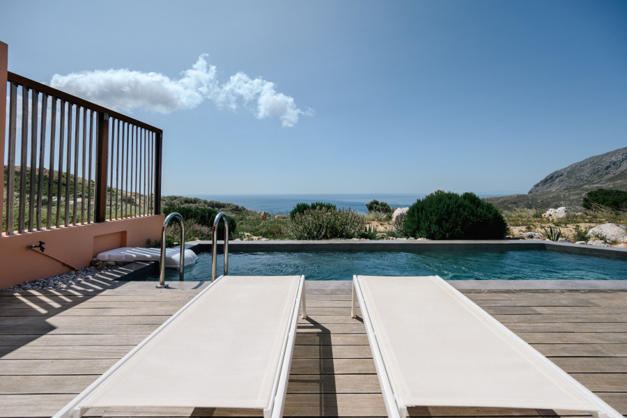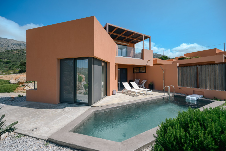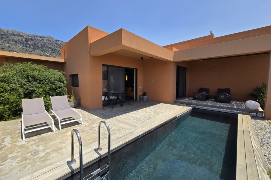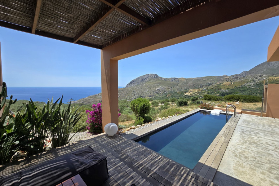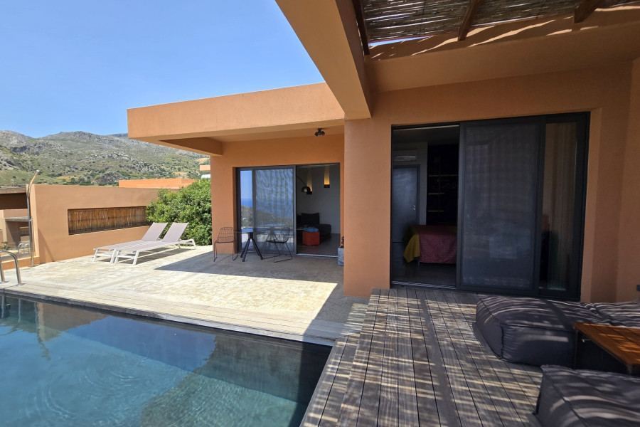 A rare investment opportunity in Southern Crete: a recently built, fully licensed tourist complex located just outside the charming village of Sellia and only 2 km from the pristine beach of Souda. Set within a stunning 10,000 m² plot of natural rocky terrain and landscaped gardens, this unique complex offers complete privacy along with breathtaking sea and mountain views.