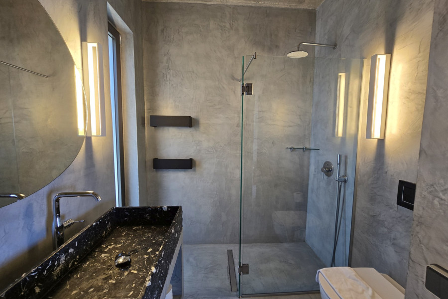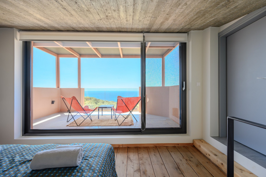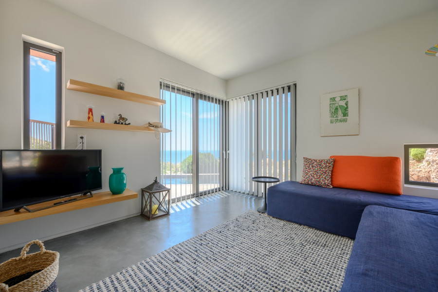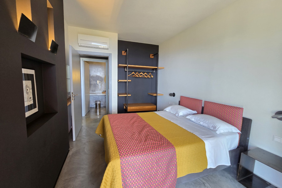 Solid concrete structure with brick walls and full thermal insulation Exterior surfaces with industrial concrete and elegant wooden decking Interior floors in industrial concrete and high-quality oak parquet Modern resin finishes in all bathrooms (floors & walls) Double-glazed aluminium windows with mosquito nets Air-conditioning units (heating/cooling) in all bedrooms and living areas Hot water via solar panels 2 septic tanks | 2 water tanks (25,000L total capacity) Landscaped gardens with native aromatic herbs and an automatic irrigation system