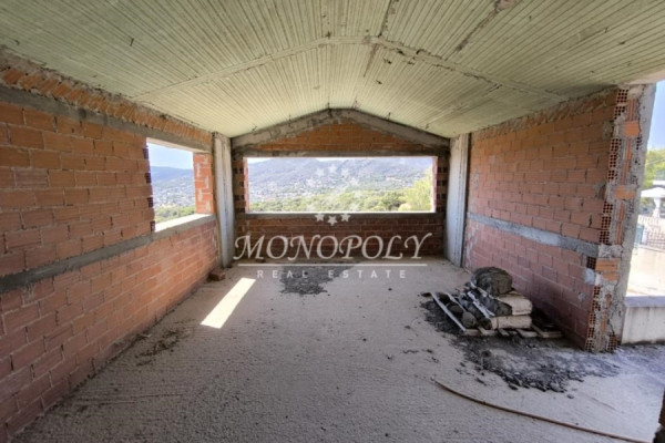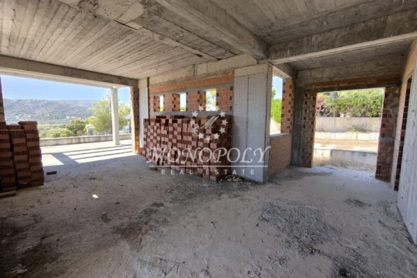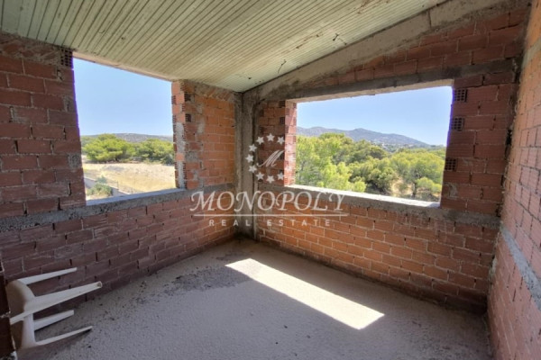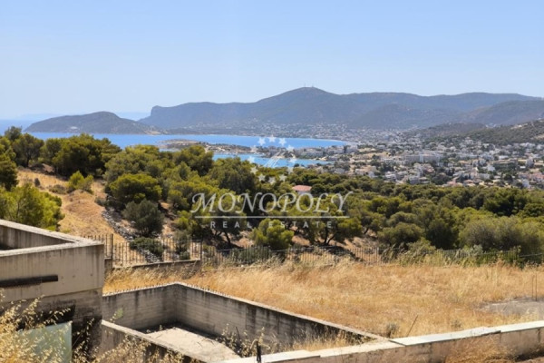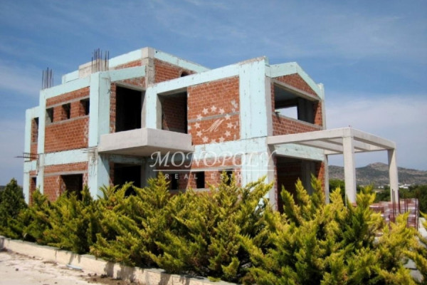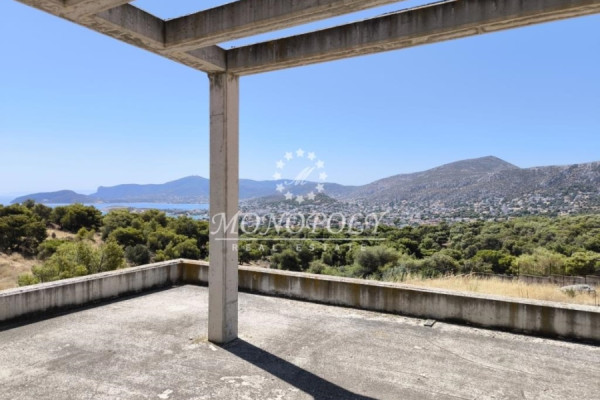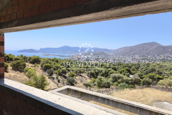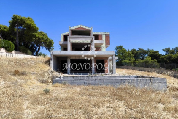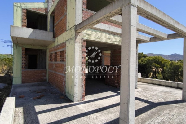 Porto Rafti, unfinished Detached House 410sqm., on a fenced plot of 6.000sqm, with a building permit from 2007, with garage, outdoor pool and sea and area views, from all levels.