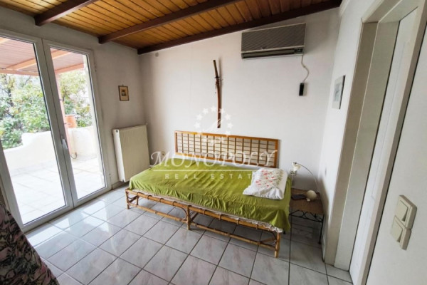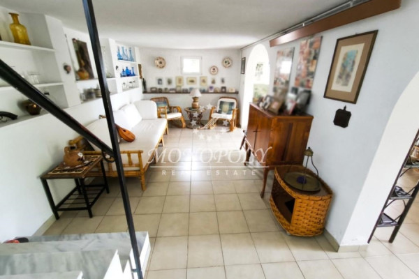 On the 2nd floor there is the 22sqm attic. which we go up with an external circular metal staircase. This consists of a living room, 1 master bedroom (bathroom with shower) and a large and wide terrace with a very nice view of the sea.