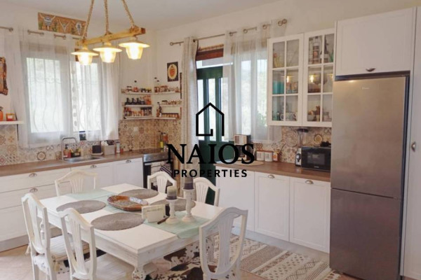 The property was built in 1984 and was fully renovated in 2022. It consists of two levels: the ground floor (90 sq.m.), currently unfinished and used as storage/garage, and the first floor (also 90 sq.m.), fully renovated and move-in ready. It features 2 bedrooms, 1 bathroom, open-plan living room with fireplace and kitchen, 2 air conditioning units, aluminum window frames with double glazing, and a security door. There is a wrap-around balcony of approximately 30 sq.m. and a spacious rooftop terrace over 100 sq.m. with panoramic sea views of both the Saronic and Corinthian Gulfs, as well as mountain views from the kitchen and main bedroom.