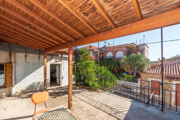 The heating is individual oil, the floor is parquet and tile, while the frames are wooden. The orientation of the property is east. With the appropriate renovation, it can be configured either in 2 smaller houses, or in a single one of 125 sq.m. It has a large space as a warehouse on the ground floor, comfortable terraces outside, a yard, as well as a parking space.