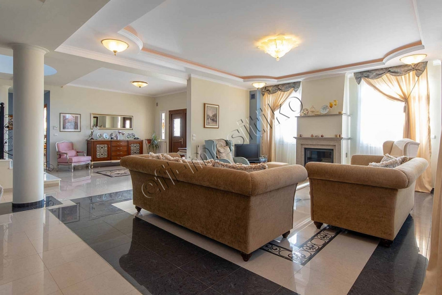 Property Code: 18254 - House FOR SALE in Alexandroupoli Nea Chili for € 1.100.000 . This 340 sq. m. House is on the Mezzanine floor and features 6 Bedrooms, Livingroom, Kitchen, 4 bathrooms . The property also boasts Heating system: Individual - Natural gas, tiled and wood floors, view of the Sea, Window frames: Synthetic, Security door, elevator, accessibility for people with disabilities, parking, a storage unit 160 sq.m. sqm, garden, fireplace, alarm system, insect screens, double-glazed windows, entry stairs, BBQ, playroom, open space, internal staircase. The building was constructed in 2004 Plot area: 8000 s.q. . Building Energy Rating: D Distance from sea 1000 meters, Distance from the city center: 2800 meters,
