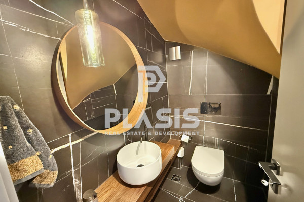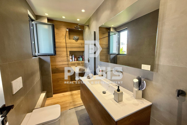 Detached house For sale, floor: Ground floor, in Alimos - Kalamaki. The Detached house is 255 sq.m. and it is located on a plot of 180 sq.m.. It consists of: 3 bedrooms (1 Master), 2 bathrooms, 1 wc, 1 kitchens, 1 living rooms and it also has 2 parkings (2 Underground). The property was built in 2019. Its heating is Autonomous with Heat pump, Underfloor heating, Heating per level, Air conditioning are also available, it has Aluminum, Thermal brake frames with Triple glazed windows, the energy certificate is: B+ and its floors are Wooden. The property's status is: New development, Excellent condition, it is close to Transportation, Park, School, Local market, 500 Meters from seaside, 9.2 Km from city, 28.4 Km from airport, it has Good view and it has East meridian orientation. The Detached house is With Facade, Bright, Airy, Sunny, Airy, Luxury, it is suitable for Investment, Revenue source and it also has the following unique features and advantages: Window Screens, Tents, Storage, Internal staircase, Swimming pool, Garden, Security door, CCTV, Security alarm, Automatic watering, Grass, Trees, Pets allowed, Quiet neighborhood, Porch, Smart home, Drains. Price: €1,050,000. Plasis Real Estate Glyfada, contact phone: 2109601909, email: