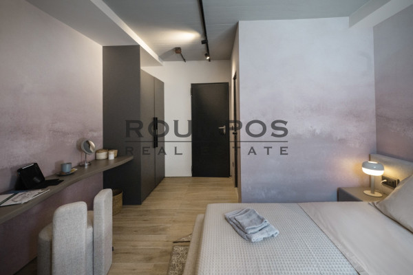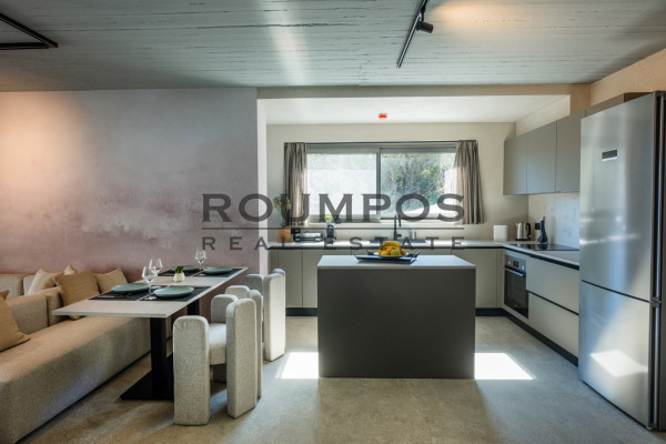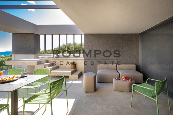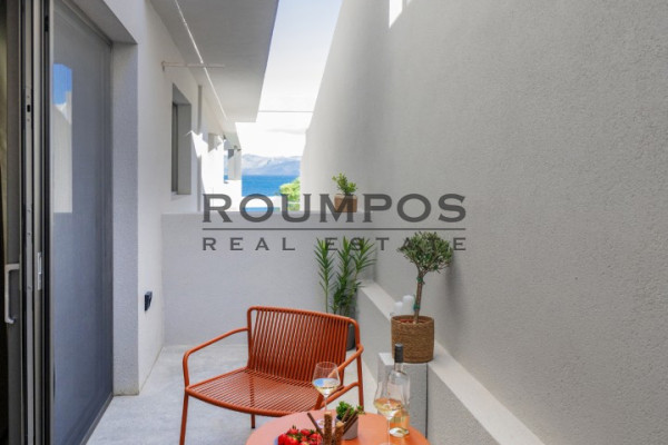 The internal layout includes a single reception area with an open plan kitchen, as well as 1 bedroom with an en-suite bathroom. The apartment is completed by large terraces with a total area of 47 sq.m., ideal for outdoor living and enjoyable moments overlooking the Aegean.
