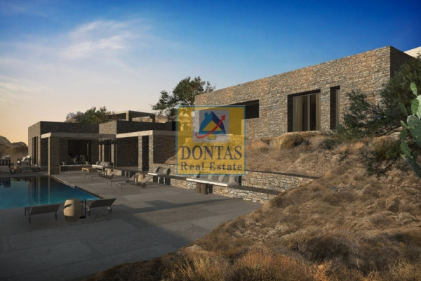 Naxos, Plaka, Villa, 153 sq.m., On a plot of 2900 sq.m., Minimal Design condition, 3 Level(s), UNIQUE VILLA WITH UNLIMITED VIEW OF THE AEGEAN, 3 Bedrooms (3 Master), 3 Bathroom(s), 1 WC, 1 Kitchen(s), 3 Parking, Year of construction 2021, Energy Certificate: A+, Floors: pressed cement mortar, Frames: Aluminum, Features: Security door, Storage, Night current, Internal staircase, Triple Glazing, Screens, Verandas, BBQ, Pets Allowed, No Shared Rooms, Stone, Luxurious, Airy, Front, Bright, Air Conditioning, Swimming Pool, Garden, Newly built, Painted, Country House, In the southwest part of the island, a unique villa was rebuilt on the hill, which gazes at one of the most popular sunsets of the Cyclades. (The combination of white and stone harmonizes with the minimal architecture of the Aegean islands.), The residence is developed in three building volumes. On the basement level we have two bedrooms and two bathrooms. (This level has bioclimatic features. It not only protects from the winds but also provides a constant comfort temperature of 20 degrees Celsius, while offering excellent conditions for indoor plants.), The second building volume is the master bedroom with its own bathroom and an internal area of 27 square meters. (In the third volume we have a living room with provision for a fireplace, kitchen and wc. In addition there is an underground utility space of 25 square meters.), The exterior spaces have been carefully designed so that they can be used like the main spaces. (Wooden pergolas provide shade as well as protection from the sun. The outdoor pool seating area is 25m2 and the outdoor courtyards are 150m2 while the pool area is 50m2. The outdoor dining area is 30m2.), Modern materials married with Cycladic materials such as stone and wood are perfectly harmonized, making the stay a unique experience., Individual - Heat Pump Heating, View: Unlimited, distance from: Sea (m): 1500, Price: €1,150,000, Tel: 2106231555 6980502020, www.dontasrealestate.gr,
