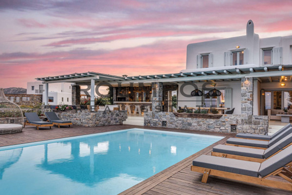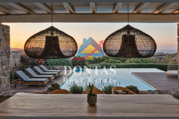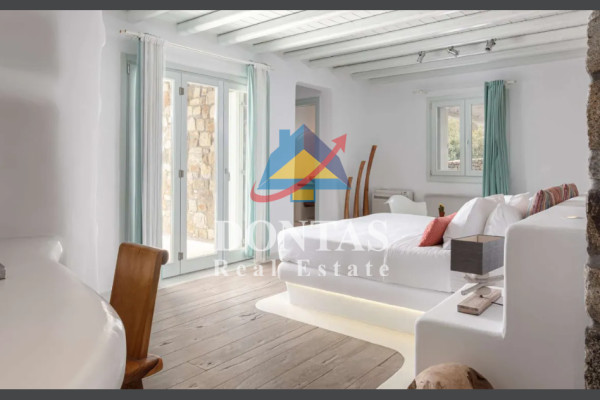 Villa For Sale, floor: Ground floor, 1st (2 Levels), in the area: Mykonos - Kalafati. The area of the property is 188 sq.m. and is located on a plot of 2,800 sq.m. AUTHENTIC CYCLADE VILLA Combines Cycladic charm with modern luxury, offering exceptional indoor and outdoor spaces. It is located in the north-east of Mykonos, a few minutes from the crystal beaches and 15 minutes from Chora. Interiors: Spacious, sun-drenched living areas, custom woodwork and herringbone ceilings. It includes an en-suite master suite, fully equipped kitchen and airy bedrooms with stunning views. Air Conditioning in Every Room Outdoor area: Swimming pool with sunbeds, shaded lounge, outdoor dining, BBQ and covered Mini Bar next to the pool, ideal for entertaining. It has a Parking Space Capacity for up to 10 people, with 5 Bedrooms and 5 Bathrooms, this villa is ideal for families or groups of friends and offers luxurious surroundings, stunning views and close proximity to the most iconic attractions of Mykonos. High Period Rental Income: €1,600, Annual Rental Income: Approximately €150,000 Amazing Sea View. It consists of: 6 bedrooms (5 master), 5 bathroom/s, 1 wc, 3 kitchen/s, 2 living room/s, while it has 2 parking spaces (2 in closed area). It was built in 2016. The heating of the property is Autonomous with Electricity, while also available Heating per level, Air Conditioning, Solar, Boiler, it has Wooden frames with Double glazing, energy certificate: B and the floors are: Wood, Cement mortar. Its condition is: Newly built, Amazing, located near the Sea, 700 Meters from the sea, has a view of the Sea, Panoramic. The property is Furnished, Airy, Luxurious and also has the following features and advantages: Screens, Electric. Appliances, Storage, Internal Staircase, Pool, Garden, Security Door, Alarm, BBQ, Three Phase Power, Pets Allowed, Terrace. Price: €1,700,000. Dontas Real Estate, Contact Phone: 2106231555, Mob: 6980502020, email: