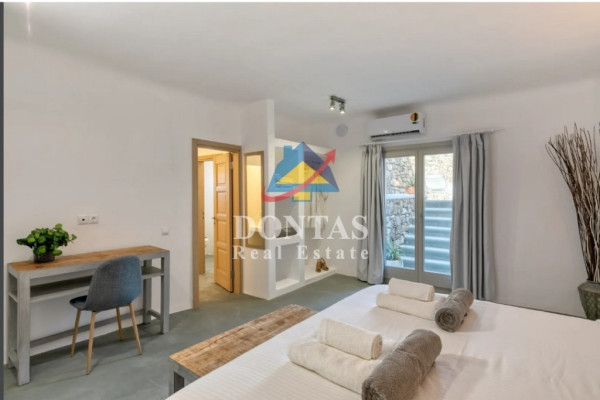Mykonos, Panormos, Maisonette, 200 sq.m, 3 Level(s), Floor: Ground Floor, LUXURY Villa in Complex, 4 Bedrooms, 4 Bathroom(s), 1 Kitchen(s), 1 Parking, Year of Construction 2019, Energy Certificate: B, Features: Security Door, El. Appliances, Internal Staircase, Double Glazing, Porches, BBQ, Allowed Pets Allowed, Luxurious, Airy, Air Conditioning, Pool, Garden, Newly Built, Painted, With reception areas, living room, kitchen, dining room, 4 bedrooms, 4 bathrooms, pool 28 sq.m, AC. Furnished (With a large terrace and pergola, BBQ, and surrounding space for sunbeds), View: Sea, distance from: Sea(m): 400, Price: €1,500,000, Tel: 2106231555 6980502020, www.dontasrealestate.gr,