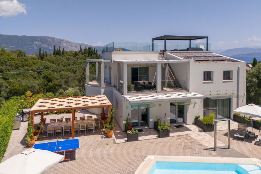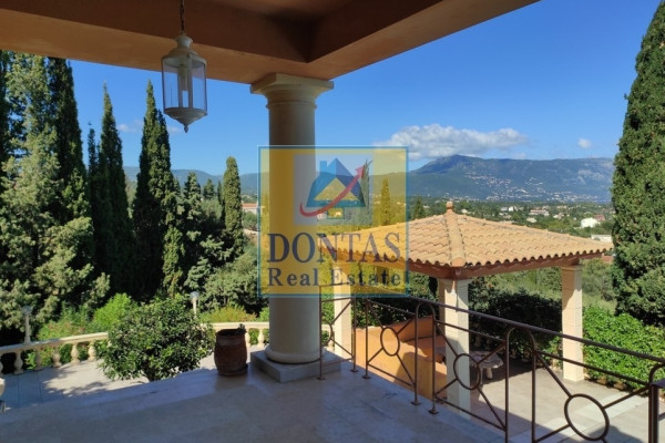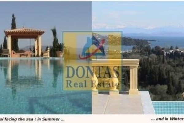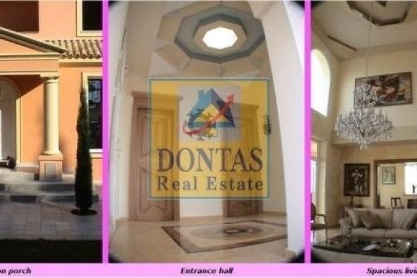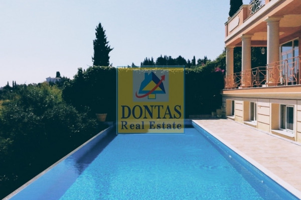 Corfu Town, Gouvia, Villa, 630 sq.m., On a plot of 6400 sq.m., Amazing condition, 3 Level(s), Floor: Ground Floor, SUPER LUXURIOUS, 4 Bedrooms (2 Master), 4 Bathroom(s), 2 WC, 2 Kitchen(s), 2 Parking, Year of construction 2004, Energy Certificate: B, Floors: Marble, Frames: Aluminum, Features: Security Door, Alarm, Storage, Fireplace, Jacuzzi, Playroom, Internal Staircase, Double Glazing, Verandas, BBQ, Pets Allowed, No Shared Rooms, Luxury, Mansion, Bright, Air Conditioning, Boiler, Lawn, Auto Watering, Trees, Pool, Garden, Painted, On the garden level 268 sq.m (Access through an imposing entrance with Greek columns, -Laundry room, wc, -Mainly kitchen: solid beech, 250 sq.m living-dining-office with mezzanine), Upper level 182 sq.m (2 main bedrooms leading to a pergola with an amazing view. Each with its own bathroom. Marble floors and walls. ), Lower level 252 m2 (Large apartment that can be independent, consists of 2 bedrooms, bathroom, kitchen-dining room, - Large gym (can be configured as 2-3 bedrooms, if necessary), - Bathroom with toilet, - Garage with technical room (boiler, etc.), Large plot 6400 sq.m (Many trees, olives, oranges, cypresses, mimosas, eucalyptus, palm trees. With drilling), Individual Heating, View: Panoramic, near: Sea, Market, distance from: Sea(m): 250, City(m): 1000, Price: €2,500,000, Tel: 2106231555 6980502020, www.dontasrealestate.gr,