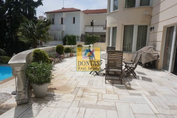 Ekali, Detached house, 800 sq.m., On a plot of 1800 sq.m., Amazing condition, 3 Level(s), REAL PALACE, IN AN EXCELLENT LOCATION, UNIQUE ARCHITECTURE, 6 Bedrooms (5 Master), 7 Bathroom(s), 2 WC, 2 Kitchen(s), 3 Parking, Year of construction 2007, Energy Certificate: C, Floors: Parquet, Frames: Aluminum, Features: Elevator, Security Door, Alarm, CCTV, Storage, Fireplace (3), Jacuzzi, Night current, Playroom, Internal Staircase, Double Glazing, Screens, Verandas, Pets Allowed, Traditional house, Luxurious, Airy, Front, Bright, Air conditioning, Boiler, Lawn, Self-watering, Trees, Pool, Garden, Painted, Ground floor with large reception areas, 3 living rooms, fireplace, dining room, closed kitchen with its own dining room, guest W.C, large terraces (, 1st floor with 4 Master en suite rooms with their own the bathrooms, living area with large balconies with unobstructed view), Playroom with 2nd kitchen, living area, fireplace, 1 guest room and 1 maid's room, Laundry, storage rooms (, 3 closed parking spaces), Excellently landscaped garden with ornamental plants and a large swimming pool, Autonomous - Oil Heating, East Meridian, Bright, Front, Bright, View :Panoramic , close to: Market, Church, Central Street, School, Square, Price: €4,000,000, Tel: 2106231555 6980502020, www.dontasrealestate.gr,