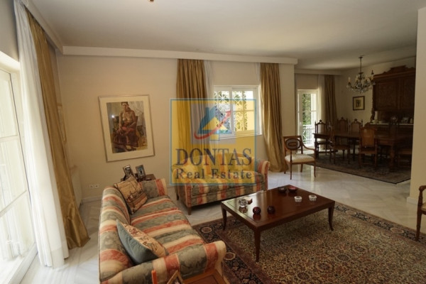 Kifissia, Strofyli, Detached house, 450 sq.m., On a plot of 630 sq.m., Amazing condition, 3 Level(s), Floor: Ground floor, Amazing detached house with unique aesthetics and traditional architecture, near Kifissia grove and ISAP station, 5 Bedrooms (1 Master), 3 Bathrooms, 1 WC, 2 Kitchen/s, 2 Parking, Year of construction 1992, Energy Certificate: D, Floors: Floors + Marbles, Frames: Aluminum, Features: Security Door, Alarm, Storage, Fireplace (2), Night current, Playroom, Internal Staircase, Double Glazing, Verandas, Pets Allowed, Neoclassical, Front, Bright, Corner, Boiler, Lawn, Auto Watering, Trees, Garden, ground floor 135 m with 2 living rooms with fireplace, dining room, closed kitchen with its own dining room, and wc, (1st floor 105 m with 4 rooms, 1 master and 3 children's rooms with 1 bathroom, and living room), playroom 190 m, with independent entrance, with living room, living room, fireplace, kitchen 1 room with bathroom, 2 warehouses, 2 closed spaces garage, and boiler room (the house also has a heat pump, Dionysos marble and oak floors), Landscaped garden (with large trees and nice fencing), Autonomous - Heat Pump Heating, Façade, Bright, near: ISAP, Market, Square, School, Super Market, Price: €1,950,000, Tel: 2106231555 6980502020, www.dontasrealestate.gr,