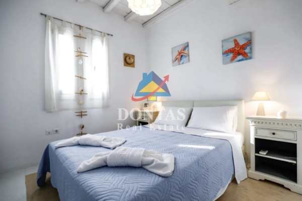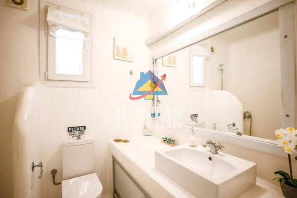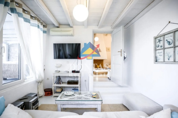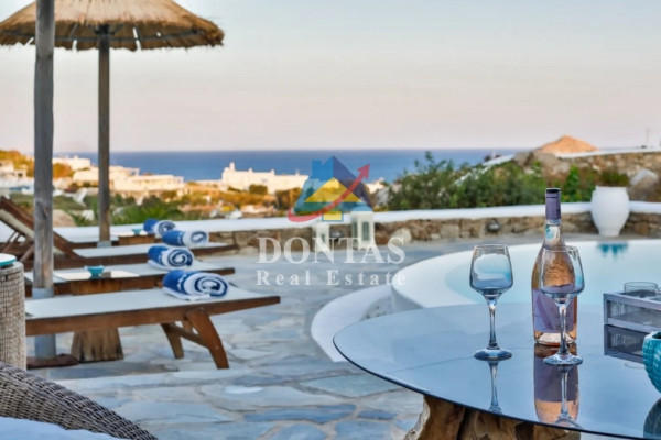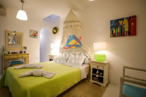 Detached house For sale, floor: Basement, Ground floor (2 Levels), in Mykonos - Kalafati. The Detached house is 177 sq.m. and it is located on a plot of 1,200 sq.m.. It consists of: 5 bedrooms, 4 bathrooms, 2 kitchens, 2 living rooms and it also has 3 parkings (3 Open). The property was built in 2007. Its heating is Autonomous with Electricity, Heating per level, Air conditioning are also available, it has Wooden frames with Double glazed windows, the energy certificate is: E and its floors are Cement decorative coating. The property's status is: Excellent condition, it is close to Seaside, 500 Meters from seaside, it has Sea view. The Detached house is Furnished, With Facade, Bright, Airy, Luxury, it is suitable for Holiday home, Investment, Storage, Internal staircase, Swimming pool, Garden, Security door, CCTV, Security alarm, BBQ, Pets allowed, Energy autonomous, Porch. Price: €1,100,000. Dontas Real Estate, contact phone: 2106231555, Mob: 6980502020, email: