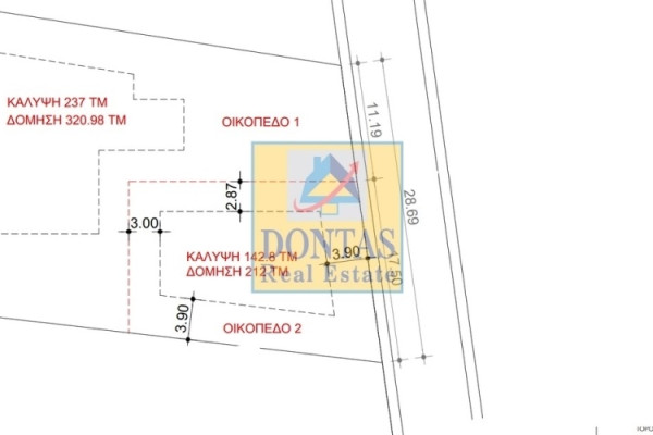 For Sale, Plot, 370 sq.m. Within the plan, in the area: Nea Erythrea - Kastritsa. The Plot is Buildable, Flat, Fenced, Frontage, has a frontage of 16.5 m. The plot is fenced, divided by VERTICAL property and is in complete Independence with the adjacent one. Builds up to 217 sq.m., is located near Transportation, Super Market, National Highway, in a Residential area. The land use is Pure Residential. Price: €345,000. Dontas Real Estate, Contact Phone: 2106231555, Mob: 6980502020, email: