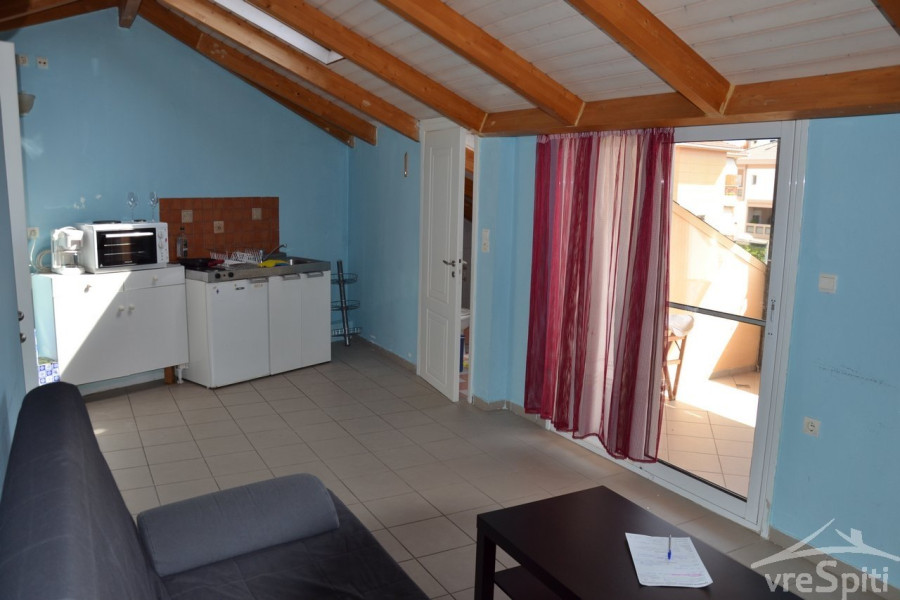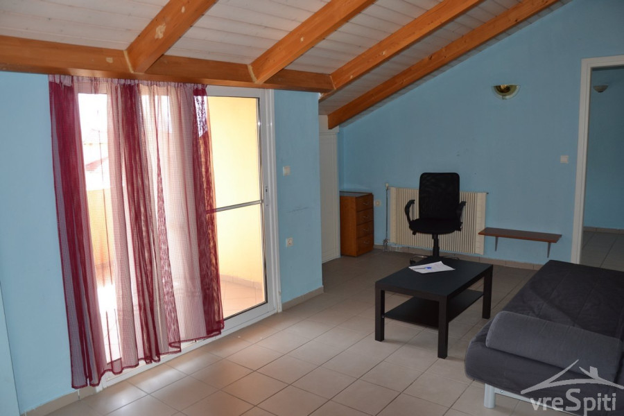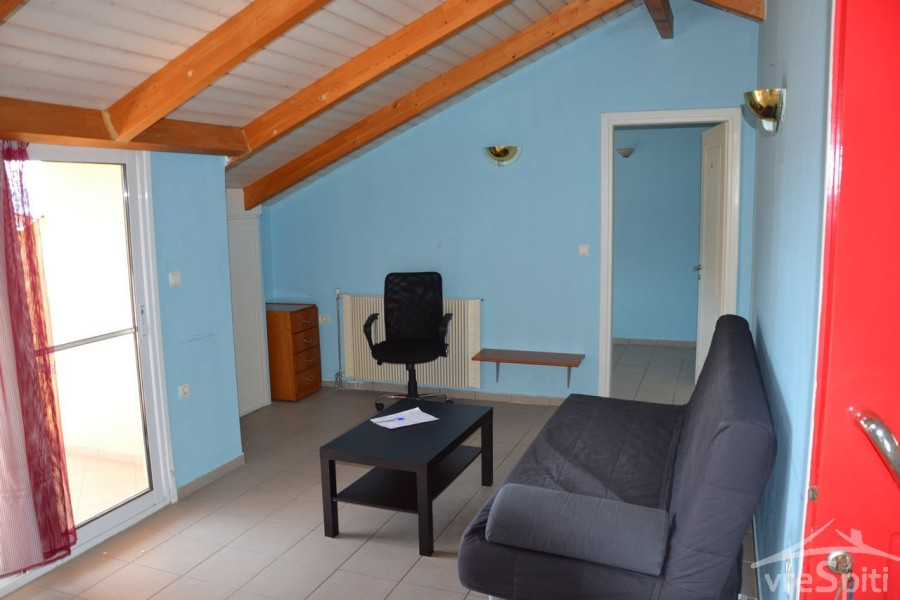 In the area of Kiafa in Ioannina, a 45 sq.m. attic apartment is for rent, consisting of a living room-kitchen, bedroom and bathroom.