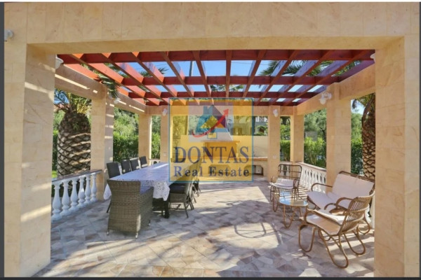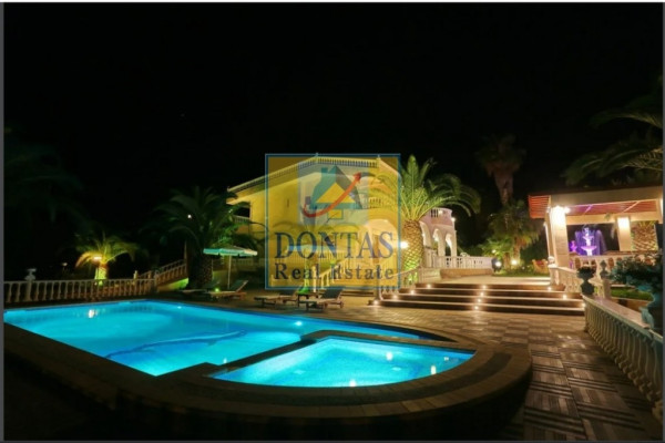 Pallini, Chanioti, Detached house, 350 sq.m., On a plot of 2100 sq.m., 3 Level(s), Luxury villa, High standard in front of the beach with swimming pool and amazing view of the sea and Mount Athos Peninsula., 5 Bedrooms (4 Master), 5 Bathroom(s), 2 WC, 2 Kitchen(s), Year of construction 2000, Energy Certificate: C Frames: Aluminum, Features: Security Door, Alarm, Storage, Fireplace (2), Jacuzzi, Electric Appliances, Playroom, Internal Staircase, Double Glazing, Verandas, BBQ, Pets Allowed, Frontage, Air Conditioning, Solar, Automatic Watering, Swimming Pool, Garden, Painted, Renovated, CONSISTS of 3 levels (the BASEMENT 120 sq.m. with windows and a view of the pool and the garden, It has a kitchen, living room with fireplace, and 1 room with a bathroom), the GROUND FLOOR 120 sq.m. it has reception areas, a large kitchen, 1 room with bathroom and jacuzzi, 1 guest toilet, living room with fireplace, dining room with exit to a large terrace and a view in front of the sea and the Athos Peninsula. (The 1st FLOOR 120 sq.m. has 4 master rooms with their own bathrooms and huge terraces overlooking the sea.), The outside area has a perimeter fence and is an excellently landscaped garden with automatic watering and natural stones, palm trees, with 2 fountains, a gazebo in the Barbeque area, It has a swimming pool, with sunbeds and umbrellas , with 2 external showers, ideal for adults and children. (HOUSING AMENITIES: Alarm with 8 cameras, oil heating and boiler room with 5 ton tank, air conditioning system, 2 Italian kitchens, armored doors, TV satellite antenna, solar water heater, Renovated in 2017 and lined internally with onyx and marble. It is fully furnished with branded furniture and all electrical appliances, generator 35 kw, closed parking 90 sq.m, with disabled ramp, pergolas), Autonomous - Oil Heating, View: Sea, distance from: Sea(m): 30, Price: 4,000,000€, Tel: 2106231555 6980502020, www.dontasrealestate.gr,