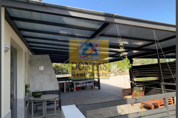Loutraki-Perachora, Vouliagmeni, Detached house, 340 sq.m., On a plot of 5200 sq.m., 3 Level(s), 800 m, from Lake Loutraki, 6 Bedrooms, 6 Bathroom(s), 1 WC, 3 Kitchen(s), 2 Parking, Year of construction 2009, Energy Certificate: D, Floors: Tiles, Frames: Aluminum, Features: Security Door, Storage, Fireplace (2), Jacuzzi, Internet, Electrical Appliances, Internal Staircase, Double Glazing, Screens, Awnings, Verandas, BBQ, Pets Allowed, Air Conditioning, Solar, Trees, Garden, Consists of 3 Levels, Ground Floor, 1st and 2nd Floors (The GROUND FLOOR has living areas, living room, dining room, kitchen with a 5 m Corian worktop, 4 rooms and 2 bathrooms and a storage room that can be used as a 3rd bathroom), On the 1st FLOOR it has living areas, a living room with an energy fireplace, a kitchen, an office and a guest toilet (the 2ND FLOOR has a living room area, a room with a small , 1 bathroom with jacuzzi and shower and many wardrobes), The residence has a studio Studio with hall, 1 room and 1 bathroom (Plot 5,200 sq.m., with a landscaped area and two entrances, Around the house there are pergolas, a terrace with a solarium and a shower, an olive grove with 30 trees, a garden with figs, pomegranates, and 7 varieties of citrus fruits - including Frapa and ``Buddha's hand'', Feijoa, strawberry with large fruits, etc. ), Near Lake Loutraki (800 m), From Loutraki town (10 km), and 105 km from Eleftherios Venizelos Airport via Attica Road. (The house has: 3 terraces, both with fountains (lined with artificial stones), 2 balconies, 3 kitchens, 6 bathrooms, including a master bathroom with Jacuzzi, 6 rooms, 2 living rooms, 1 office, and 2 storage rooms), The price includes the construction of a swimming pool according to the buyer's plan., Central - Oil Heating, View: Mountain + Sea, Price: €1,580,000, Tel: 2106231555 6980502020, www.dontasrealestate.gr,