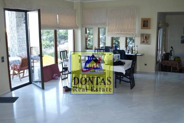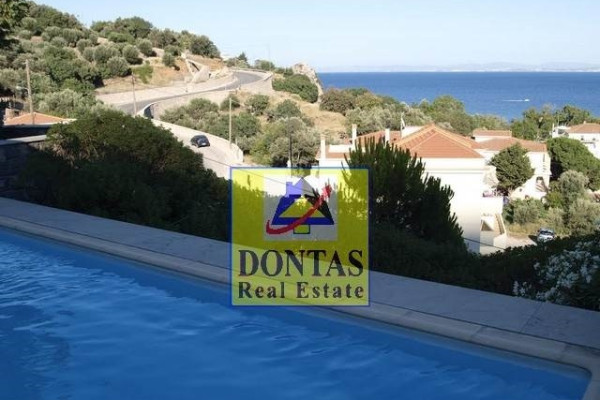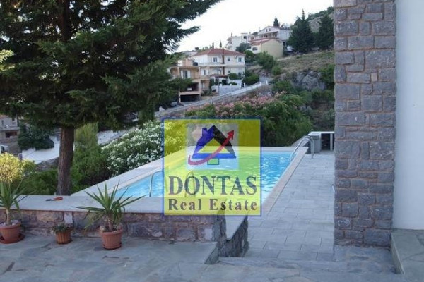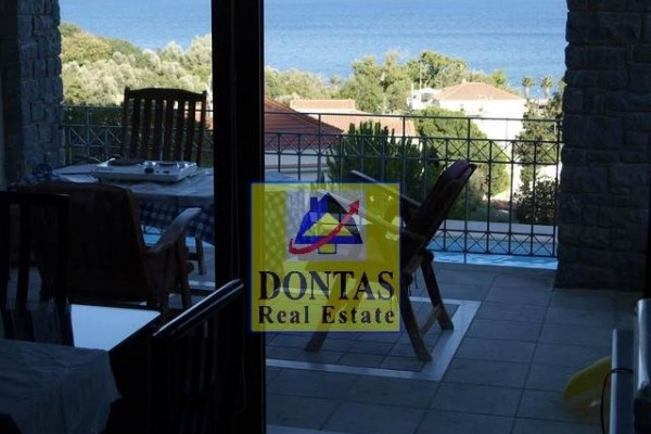 Homeropolis, Vrontados, Detached house, 210 sq.m., On a plot of 1400 sq.m., Floor: Ground floor, Unique villa in a rare position with a panoramic and commanding view, 3 Bedrooms, 2 Bathrooms, 1 Kitchen/s, 4 Parking, Year of construction 2008, Energy Certificate: C, Floors: Tiles, Frames: Aluminum, Features: Security Door, Storage, Fireplace, Double Glazing, Verandas, Swimming Pool, Garden, Newly Built, The main house is on the ground floor, spread over two levels with very little elevation difference from each other (It has a basement, an outdoor swimming pool and a parking area), It consists of a single space of about 100 square meters. m. which includes a library, living room, dining room and kitchen (It also has three bedrooms, two large bathrooms, a storage room and a small living room -patio-. All parts of the house have an unlimited view of the sea, (which is not in danger from another building) except for the one bedroom that is on the west side of the house), There is a fireplace, an oil burner and underfloor heating, airconditions, a barbecue area and it is fully furnished (The materials (Dionysus marble on the floor, frames, furniture and kitchen equipment, bathrooms) are of superior quality), Autonomous Heating, View: Panoramic, near: Central Road, Price: €650,000, Tel: 2106231555 6980502020, www.dontasrealestate.gr ,