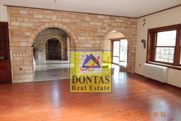 Detached house For sale, floor: Ground floor, 1st, 2nd (3 Levels), in Stamata - Efxinos Pontos. The Detached house is 580 sq.m. and it is located on a plot of 2.000 sq.m.. It consists of: 7 bedrooms (5 Master), 5 bathrooms, 2 wc, 1 kitchens and it also has 2 parkings (2 Open). The property was built in 1980. Its heating is Autonomous with Oil, Air conditioning are also available, it has Wooden frames, the energy certificate is: E and its floors are Wooden. The property's status is: Renovated, Very good condition, it is close to School, Square, Cafe/Restaurants, it has Mountain view. The Detached house is Painted, With Facade, Bright, Neoclassical, Stone house, Storage, Internal staircase, Garden, Security door, Security alarm, Playroom, BBQ, Trees, Pets allowed, Porch. Price: €700,000. Dontas Real Estate, contact phone: 2106231555, Mob: 6980502020, email: