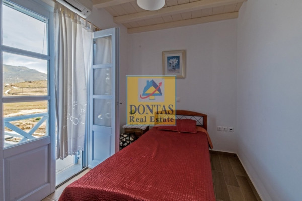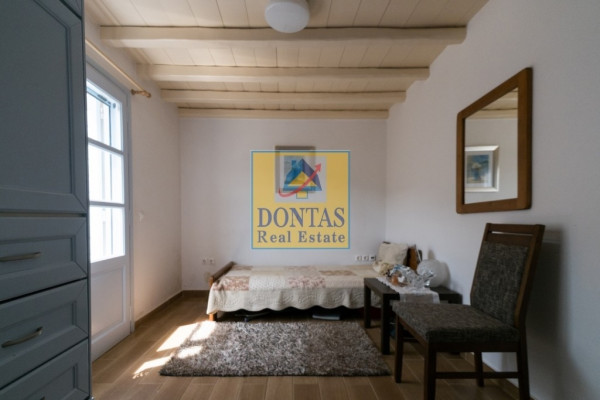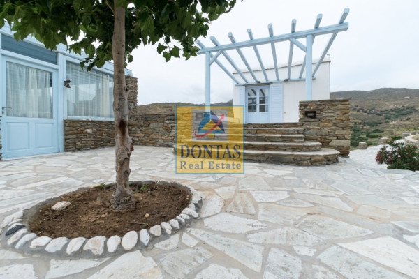 Tinos Chora, Detached house, 350 sq.m., On a plot of 3200 sq.m., Amazing condition, 2 Level(s), Cycladic Architecture in a unique location, 100 m. from the sea with Unobstructed view of the sea and the sunset, 4 Bedrooms, 4 Bathroom(s), 2 Kitchen(s), 4 Parking, Year Built in 2015, Energy Certificate: B, Floors: Marble + Tiles, Frames: Wooden, Features: Security Door, Storage, Fireplace (2), Double Glazing, Screens, Verandas, BBQ, Pets Allowed, Air Conditioning, Swimming Pool, Garden, Newly Built, These are two villas at a distance of 5 km from the town of Tinos on a plot of 3200 sq.m. (The plot has a Swimming Pool, a BBQ, a Chapel (7 sq.m.) and a one-room Guest House for Accommodation, stone-built 70 sq.m.), Both maisonettes are furnished and have large verandas, All bedrooms have a sea view (One villa has a GROUND FLOOR with a kitchen, guest wc and a bedroom. On the UPPER level there are 2 bedrooms, a wc, a living room and a closed outdoor living room of 35 sq.m.), The 2nd Villa also has 2 levels that are connected internally. The ground floor has a living room, living room, kitchen, and wc and the UPPER FLOOR with 2 bedrooms and a wc, (Suitable for Commercial rental, ), View: Sea, distance from: Sea(m): 100, Price: €1,100,000, Tel: 2106231555 6980502020, www.dontasrealestate.gr,