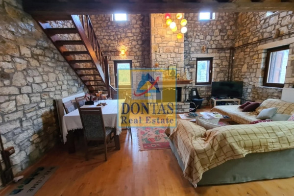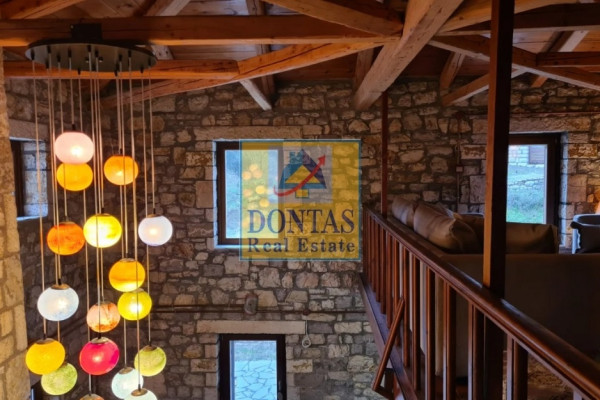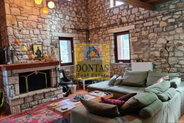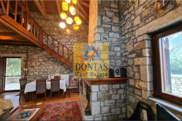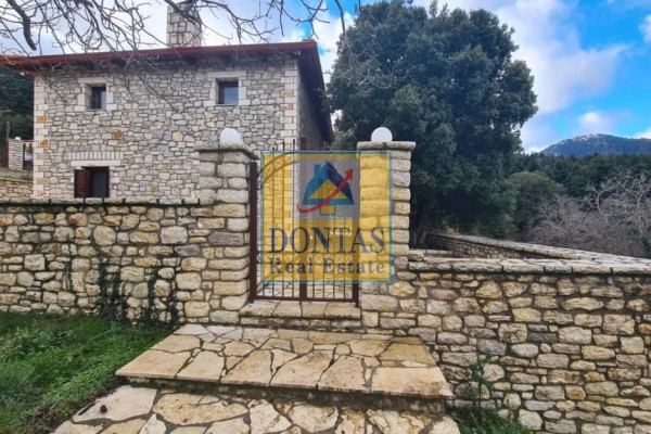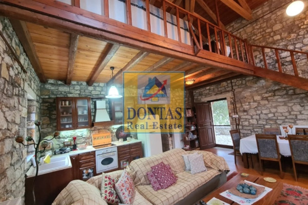 Lefkassio, Detached House, 108 sq.m., On a plot of 19350 sq.m., 2 Bathroom(s), 2 Kitchen(s), 4 Parking, Energy Certificate: D, Floors: Oak, Frames: Wooden, Features: Storage, Fireplace, Attic, Internal Staircase, Double Glazing, Pets Allowed, Stone, Traditional house, Luxurious, Airy, Frontage, Bright, Air conditioning, Painted, Stone and wood mansion. Traditional with 60 cm stone masonry. Wooden luxury frames. Wooden floor (The area of 19,350.51 m2 full of walnut and fir trees. It is not forested. Possibility of tourist development. Within the village of Valtos Kleitoria. 30 minutes from the ski resort of Kalavryta, 40 minutes from the ski resort of Mainalo. 30 minutes from Kalavryta. 1,000 meters altitude. 15 km dirt road to Lake Doxas through Kynigos channel. Next to Planetero-sources of the Aroani River and the cave of Limnon. 200km from Athens via Artemisio), The total area of 19,350.51 square meters consists of three adjacent areas of 7,089.60 square meters where the house, 6,461.81 square meters and 5 (All plots face Planitero street - Limni Doxas), It consists of a single living room-kitchen - dining room with an excellent and large fireplace, with Homad furniture, SMEG refrigerator, etc., with a raised ceiling and a wooden loft where there is a living room - sofas that become a Homad bed (There are two bathrooms - wc with shower and the There is a bedroom with two luxurious wooden bunk beds and a wooden wardrobe, View: Panoramic, Price: €850,000, Tel: 2106231555 6980502020, www.dontasrealestate.gr,