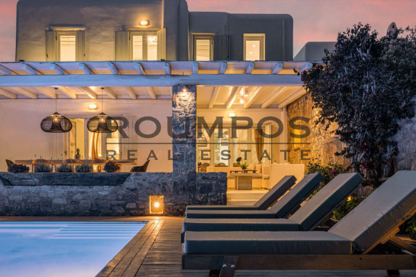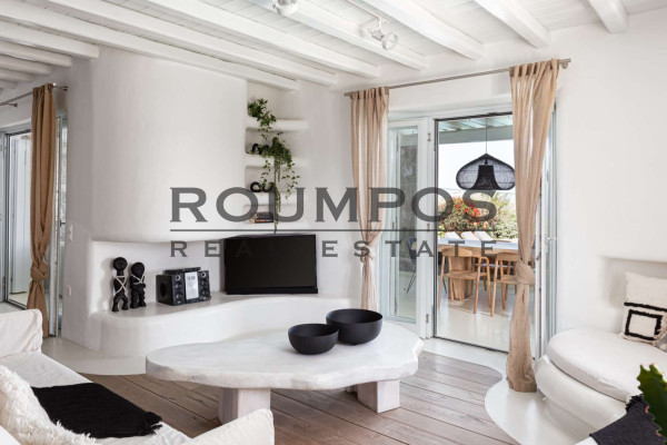 We present to you an excellent two -level Cycladic villa, totaling 188 sqm, built on a plot of 2,900 sqm, in the area of Kalafatis in Mykonos.