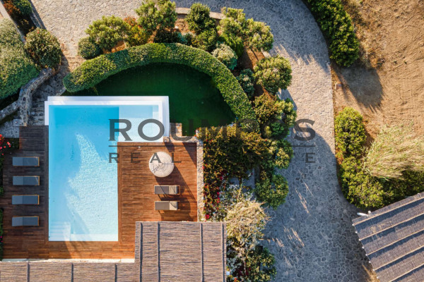 The outdoors of the villa are careful and fully equipped to provide comfort, luxury and total privacy. The outdoor private pool of 45 sq.m. Freshwater, with a jacuzzi and coverage system, features an UV robot cleaning system and salt -electrolysis for top quality water and minimal maintenance. In addition, the outdoor space includes a BBQ, a dining room and a covered living room, ideal for relaxation and hospitality. The beautifully landscaped lawn with lawn, trees and automatic watering offers natural beauty, while the large terraces give panoramic sea views.
