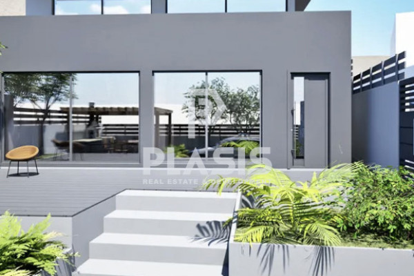 Detached house For Sale, floor: Ground floor, in the area: Markopoulo. The area of the property is 77 sq.m. and is located on a plot of 300 sq.m. It consists of: 2 bedrooms, 1 bathroom, 1 kitchen, 1 living room, while it has 1 parking spaces (1 in an open area). It was built in 2025. The heating of the property is Heat pump, it has Aluminum frames, energy certificate: A+ and the floors are: Wood. Its status is: Under construction, 800 Meters from the beach, 9 Kilometers from the airport and it has East orientation, Luxury, Security door, Alarm, BBQ. Price: €310,000. Plasis Real Estate Glyfada, Contact Phone: 2109601909, email: