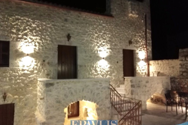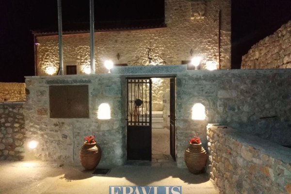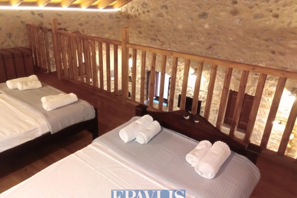 Traditional 19th-century guesthouse, fully renovated and reconstructed in 2022, with a total area of 176.31 sq.m. on a 1,544.05 sq.m. plot, located in a traditional settlement in Eastern Mani. This unique stone-built property consists of three separate apartments: a semi-basement with stone arches, 50.4 sq.m., featuring two bedrooms, a living room, kitchen, and bathroom; an elevated ground floor, 83.14 sq.m., with a wooden loft, two bedrooms, living room, kitchen, and bathroom; and an elevated tower, 32.74 sq.m., with a wooden loft, one bedroom, living room, kitchen, and bathroom. Additionally, there is an external storage-laundry room of 10.33 sq.m., equipped with modern electromechanical systems, security cameras, washing machine, and dryer. All apartments come fully furnished with appliances, bedding, air conditioning, and internet.