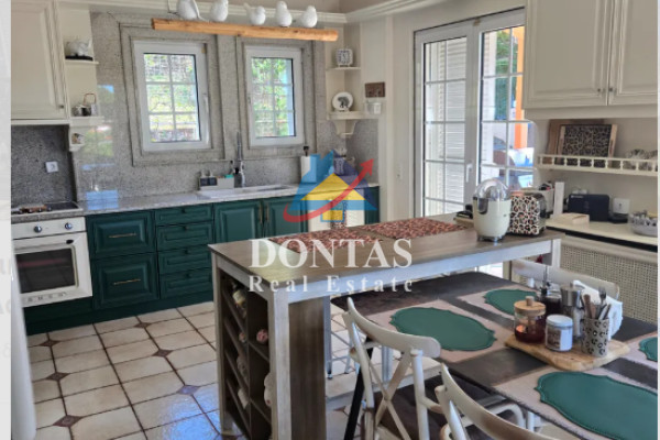 Detached house For sale, floor: Ground floor, 1st, 2nd, 3rd (4 Levels), in Nea Penteli. The Detached house is 420 sq.m. and it is located on a plot of 410 sq.m.. It consists of: 4 bedrooms (1 Master), 4 bathrooms, 1 wc, 2 living rooms and it also has 2 parkings (2 Open). The property was built in 1990. Its heating is Autonomous with Oil, Air conditioning, Boiler are also available, it has Aluminum frames with Double glazed windows, the energy certificate is: D and its floors are Wooden, Marble. The property's status is: Very good condition, it has Unobstructed view. The Detached house is Painted, With Facade, Bright, Airy, Storage, Internal staircase, Swimming pool, Garden, Security door, Internet, Playroom, No shared expenses, BBQ, Night stream, Pets allowed. Price: €885,000. Dontas Real Estate, contact phone: 2106231555, Mob: 6980502020, email:
