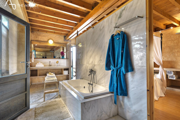 Η κατασκευή είναι εξαιρετικής ποιότητας, με κυρίαρχα στοιχεία την πέτρα και το ξύλο, που συνδυάζουν την παραδοσιακή αρχιτεκτονική με μοντέρνες πινελιές. Οι κατοικίες διαθέτουν: