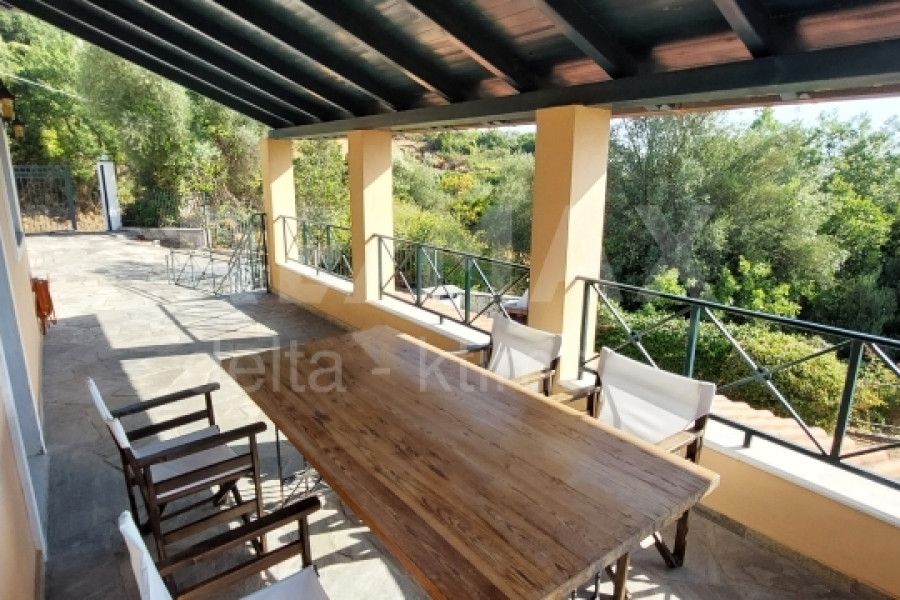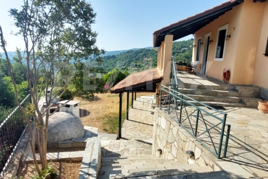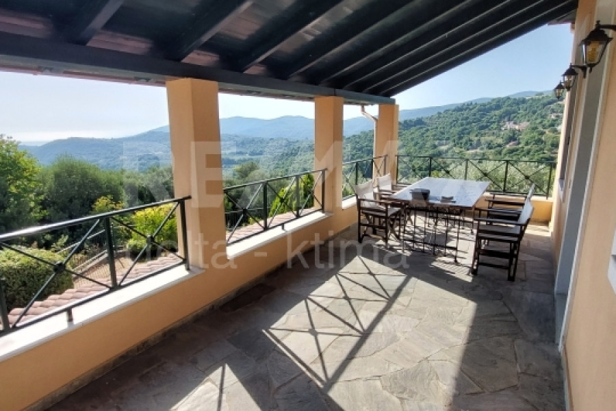 For sale is an exclusive, excellent detached house with two separate floors, total area 190 sq.m. on a fenced plot of 490 sq.m.Located in the quiet and green village of Skiti Melivoia, a short drive from the Aegean coast.An ideal choice for those seeking tranquility, natural beauty and a high-quality residence - ideal for both private use and investment.The house is developed on two levels and consists of:Ground floor apartment 76 sq.m. + 28.5 sq.m. (1 bedroom, living room, kitchen, bathroom, 1 storage room + boiler room)First floor 83 sq.m. (2 bedrooms, living room, kitchen, bathroom, WC)It has a total of 3 bedrooms, 2 living rooms, 2 kitchens, 2 bathrooms and 1 WC.Features & Amenities- Year of construction 1998- Independent oil heating separate on each floor- Fully earthquake-resistant construction- External walls with 35 cm thick thermal insulation- Automatic electric gateAlarm on each floor- Perimeter fence with solid iron railings (1m) Parquet in all rooms on the 1st floor and Pelion slab on the ground floorExterior- Beautiful internal courtyard with 60 sq m parking space- Built-in barbecue and traditional wood-fired oven, ideal for hospitality and outdoor gatherings. Lighting around the yard- Outdoor shower- Storage for garden toolsAdditional AmenitiesThe house is delivered fully equipped, including:- 2 electric stoves- 2 washing machines- 2 refrigerators2 televisions- 1 dishwasherWould you like more information?Responsible partner: Efstratios SamakidisE-mail: