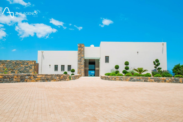 This magnificent hillside villa for sale in Istron, near Kalo Horio, offers breathtaking views over the bay of Agios Nikolaos and Mount Sitia. It is located just 700 meters from the famous Voulisma beach.
