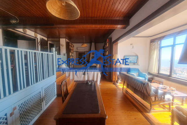 Ο εσωτερικός χώρος είναι άνετος και λειτουργικός. Το σαλόνι διαθέτει εντυπωσιακή θέα, με γυάλινα παράθυρα που προσφέρουν ανοιχτωσιά και άπλετο φως, δημιουργώντας μια θερμή και φιλόξενη ατμόσφαιρα. Οι χώροι είναι σχεδιασμένοι με προσοχή στην λεπτομέρεια, με ξύλινα δάπεδα και πολυτελή φινιρίσματα. Διαθέτει επίσης κλιματισμό και ατομική θέρμανση με πετρέλαιο για άνεση όλες τις εποχές.