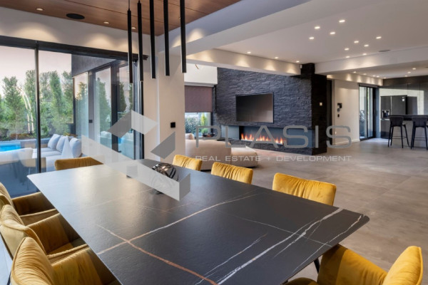 Detached house For sale, floor: Basement, Ground floor, 1st, 2nd (4 Levels), in Glyfada - Aigli. The Detached house is 536.35 sq.m.. It consists of: 4 bedrooms (3 Master), 5 bathrooms, 2 kitchens, 3 living rooms and it also has 1 parkings (1 Open). Its heating is Autonomous with Heat pump, Underfloor heating, Air conditioning, Solar water system, Boiler are also available, it has Aluminum frames with Double glazed windows, the energy certificate is: B+ and its floors are Granite. The property's status is: Excellent condition, it is close to Transportation, Park, School, Local market, 14 Km from city, 2.5 Km from seaside, 24 Km from airport, it has Mountain, Nature, Good, Unobstructed view. The Detached house is Painted, With Facade, Bright, Airy, Ramp / Wheelchair access, Luxury, it is suitable for Investment, Revenue source, Co-housing and it also has the following unique features and advantages: Electric Appliances, Energy fireplace, Storage, Attic, Internal staircase, Swimming pool, Garden, Security door, CCTV, Security alarm, Security cameras, Fire extinguishers, Smoke detector, Internet, Satellite Receiver, Night stream, Automatic watering, Grass, Trees, Pets allowed, Quiet neighborhood, Solar panels, Fiber line, Porch, Smart home, Car charger, Service/Maid's room, Drains. PROPERTY DESCRIPTION: A luxurious residential property, crafted with premium natural materials such as walnut wood, marble, and glass. Its modern architecture combines earthy tones with elegant design, creating a unique landmark in the area.DESIGN: The building comprises a basement 203.55 sq.m, ground floor 155.80 sq.m, first floor 127 sq.m, and attic 50 sq.m, alongside outdoor areas with a 50 sq.m. swimming pool, combining luxury and functionality.ENERGY-EFFICIENT BUILDING: Rated as Energy Class B+, it features a Smart Home management system, solar panels, and infrastructure for high energy efficiency.HEATING & COOLING: Includes underfloor heating with a heat pump, ethanol fireplace, and a Daikin VRV air conditioning system for maximum comfort.EQUIPMENT: Equipped with a private electric vehicle charger, advanced CCTV security system, high-quality kitchens, and custom-designed furniture.MATERIALS: Eco-friendly materials, premium granite tiles, LED lighting, and fire-resistant security doors. LOCATION: Situated in a peaceful and green area with low-density development, surrounded by elegant single-family homes, offering tranquility and prestige.. Price: €3,750,000. Plasis Real Estate Glyfada, contact phone: 2109601909, email: