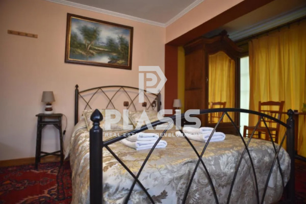Aridaia - Loutraki, Hotel For Sale, floor: Ground floor, total area 500 sq.m., in Residential. It was built in 2006, it has: 6 rooms, 6 bathroom/s, 6 kitchen/s. Its heating is Individual with Pellets, while Air Conditioning, Three-phase current, energy certificate: A+ and the floors are: Tiles, Wood are also available. Its condition is: Renovated, Amazing, has a view Opening, Good. The property is Furnished, Corner, Frontage, Bright, Airy, Sunny, Airy, Luxurious, suitable for Accommodation, Investment, Tourist exploitation and also has the following features and advantages: Structured Wiring, Swimming Pool, Garden, Alarm, Equipped.