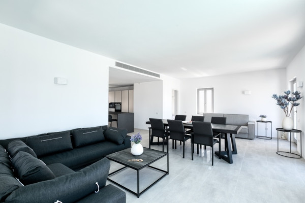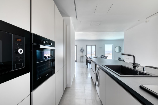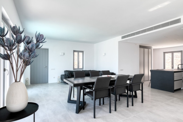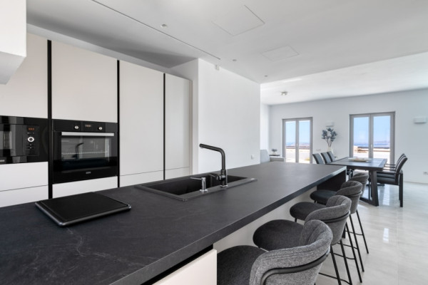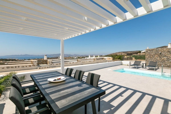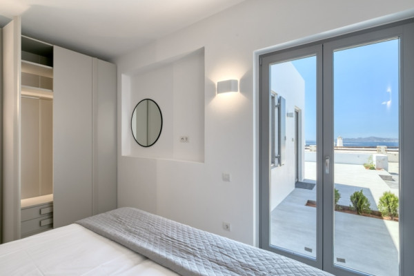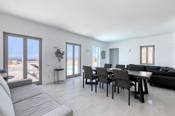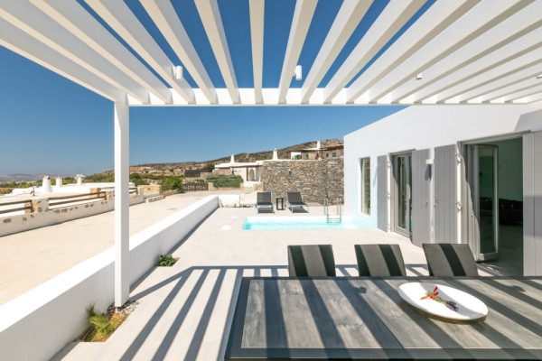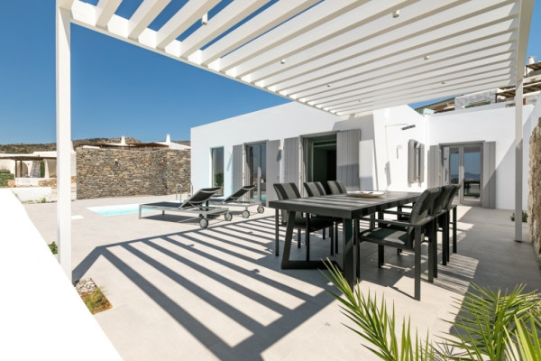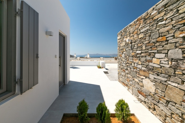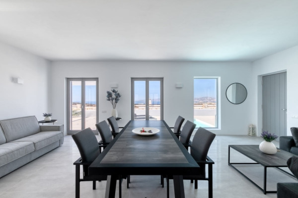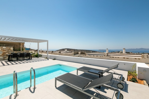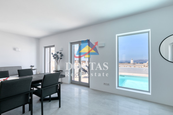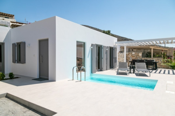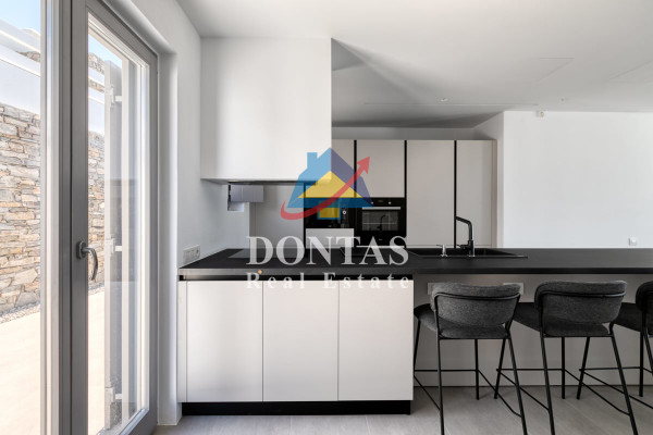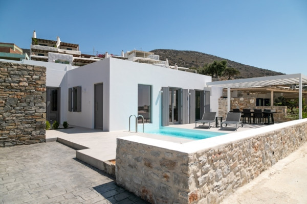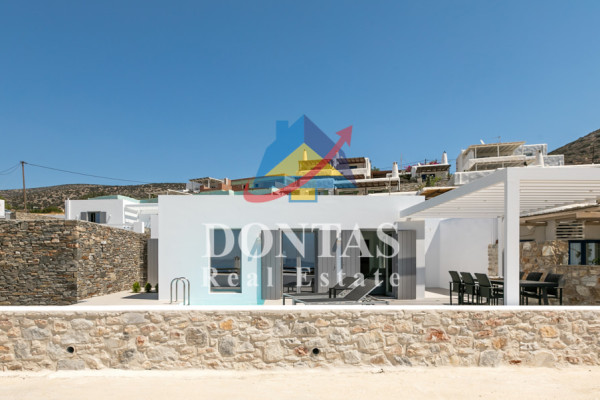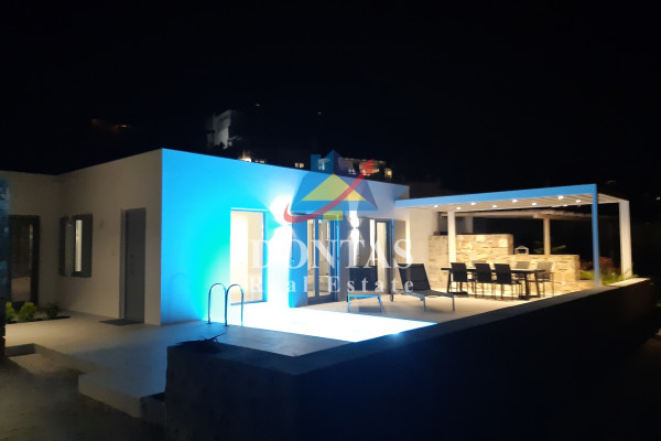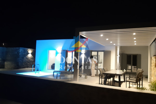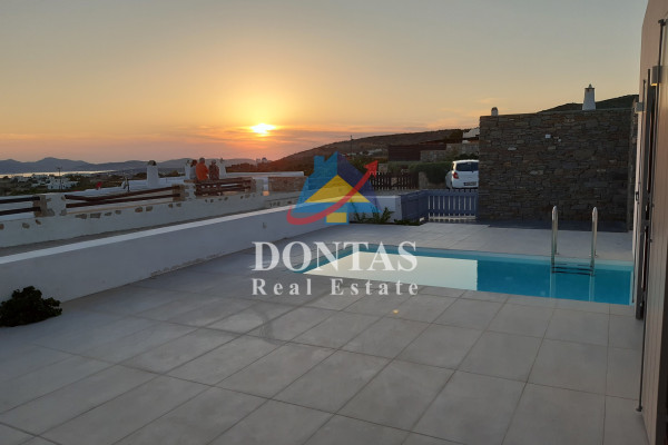 Detached house For sale, floor: Ground floor, in Paros - Agkairia. The Detached house is 105 sq.m. and it is located on a plot of 190 sq.m.. It consists of: 2 bedrooms (1 Master), 2 bathrooms, 1 kitchens, 2 living rooms and it also has 2 parkings (2 Open). The property was built in 2020. Its heating is Autonomous with Fan coil, Air conditioning, Boiler are also available, it has Aluminum frames with Double glazed windows, the energy certificate is: A and its floors are Granite. The property's status is: New development, Excellent condition, it is close to Sea, Seaside, 2000 Meters from village, 10000 Meters from city, 2000 Meters from seaside, 3000 Meters from airport, it has Sea view. The Detached house is Painted, With Facade, Bright, Airy, Luxury, it is suitable for Business and it also has the following unique features and advantages: Electric Appliances, Swimming pool, Garden, Security door, No shared expenses, Pets allowed. Price: €520,000. Dontas Real Estate, contact phone: 2106231555, Mob: 6980502020, email: