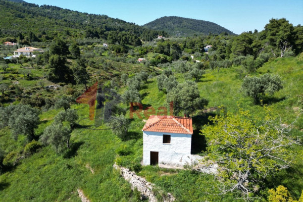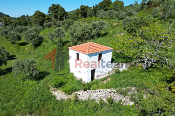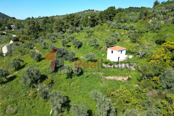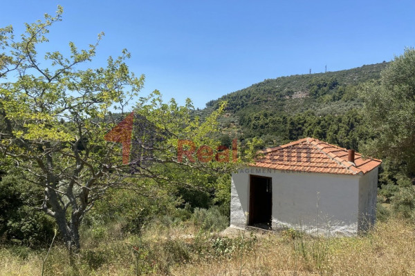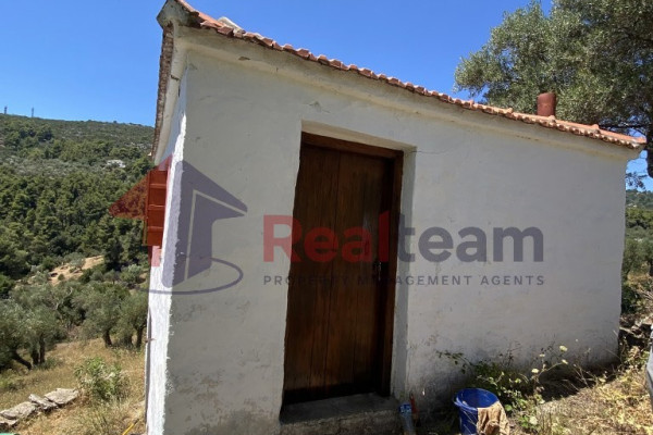 Detached house for sale, 46 sq.m. in Skopelos at the Potami location on a plot of land with a total area of 10,485 sq.m. The property has asphalt and dirt road access and is 5 km from Skopelos town, 6 km from Panormos beach and 33 km from Skiathos airport. The plot is slightly sloping with mountain views. Its orientation is Southwest. The old two-story building with a total area of 46 sq.m. where it needs renovation, it has a single room on the ground floor and a single room on the first level. The frames are wooden and the floors too. It is a very good choice for private use or exploitation as it is located in the green.